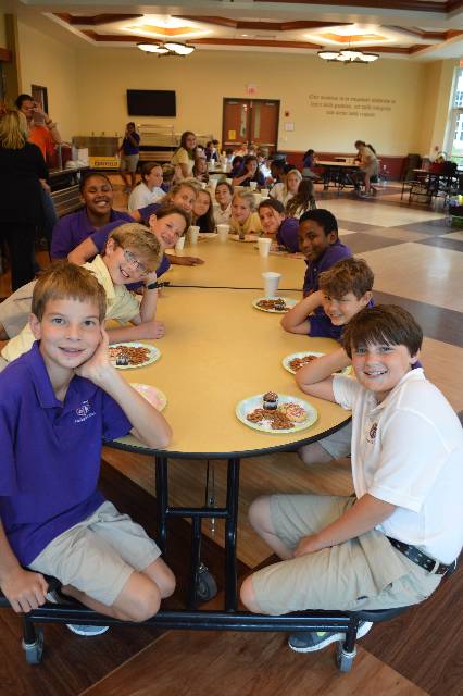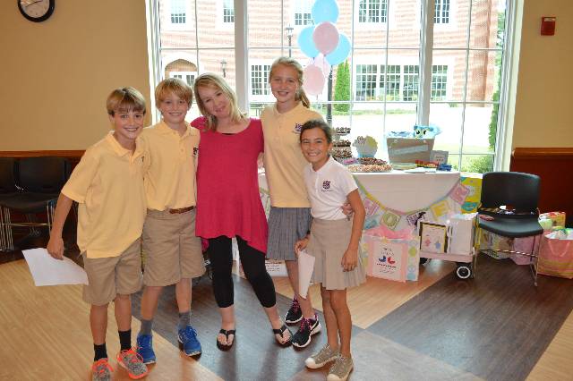 The fifth grade had a baby shower for Mrs. Fine, who will soon be having twins. The students enjoyed showering the Fines with fun gifts, diapers, and wipes.