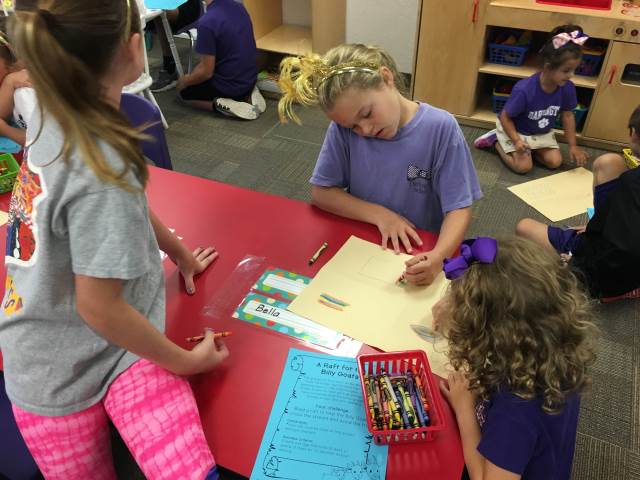Our job is to try to build a raft to hold a goat (three washers) and float for 10 seconds. Today was our first "crack" at it. Like any good designers, we will have to go back to the drawing board several times to make this raft successful for the goats!