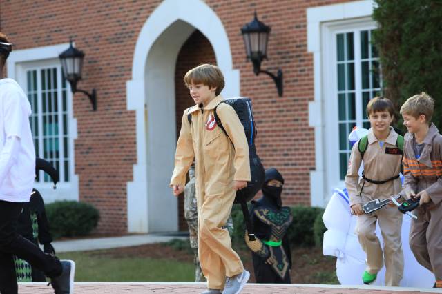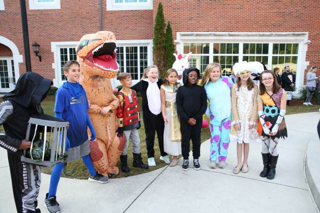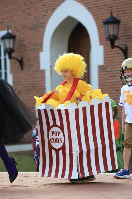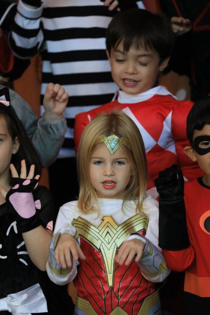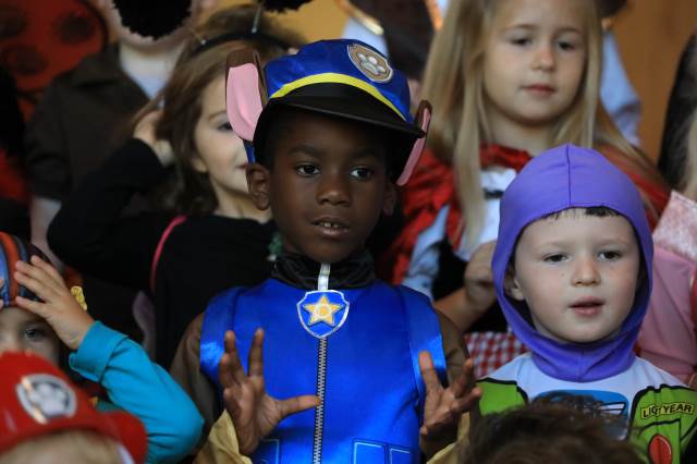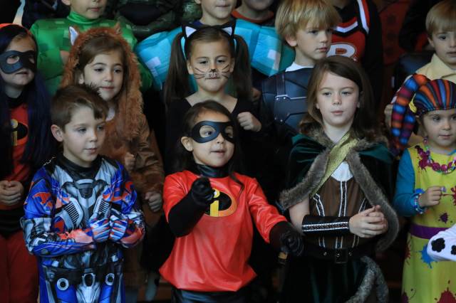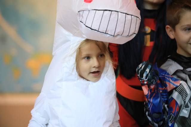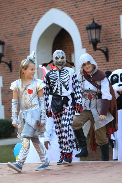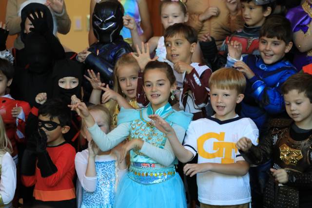Students in pre-K through fifth grade show off their creative costumes during the Halloween parade and then entertain family and friends with music.