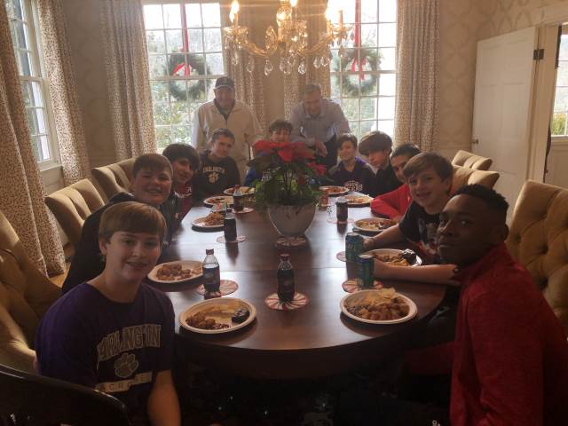 The middle school varsity boys' basketball team gathered at the Home-on-the-Hill for some holiday fun together.