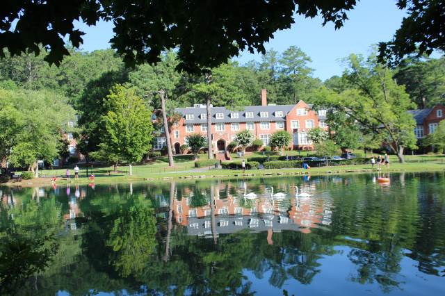 Campers have a blast exploring campus through a variety of activities like canoeing, fishing, archery, field games, and dodgeball.
