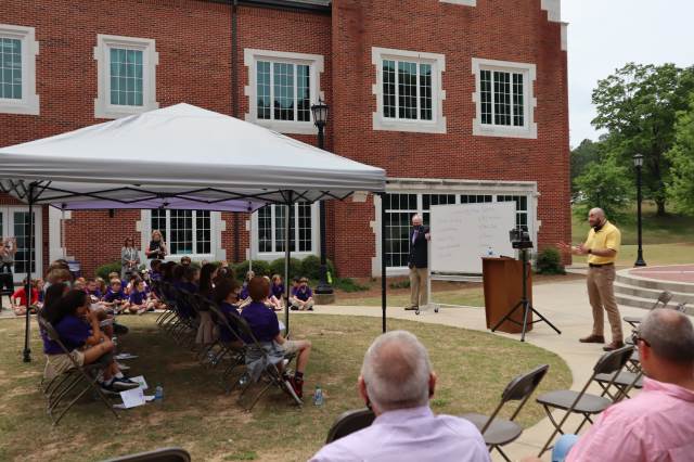 The third grade land auction is an important part of their annual Community Project, providing the opportunity for partnerships to bid on and "purchase" plots of land and buildings in the Rome area. This year's third grade community project is focused on 10 local businesses with Darlington connections that continued to serve their customers and the community during the Covid-19 pandemic.