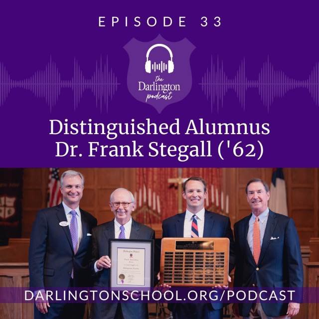 As we think about the things we are most grateful for this Thanksgiving Day, we want to share the address Dr. Frank Stegall ('62) gave during Alumni Weekend after receiving the 2021 Distinguished Alumnus Award. In it, he shares some of his favorite memories as well as the life lessons he is most grateful for learning during his time at Darlington. This episode begins with an introduction by his son, Dr. Frank Stegall Jr. ('02).