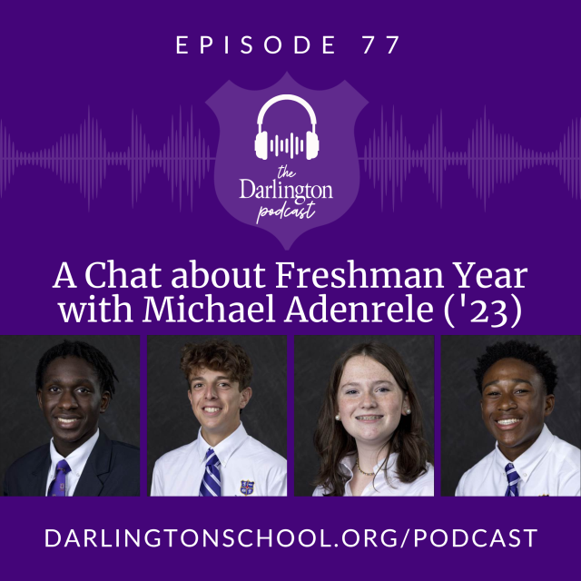 In the first-ever student-hosted episode of The Darlington Podcast, senior Michael Adenrele talks with boarding freshmen Pato Alonso and SK McQueen and day freshman Myles Twyman about their experiences at Darlington so far. They chat about classes, activities and what the freshmen are most looking forward to this year. Finally, they share what they love most about the Darlington Community and some advice for students considering Darlington for ninth grade.