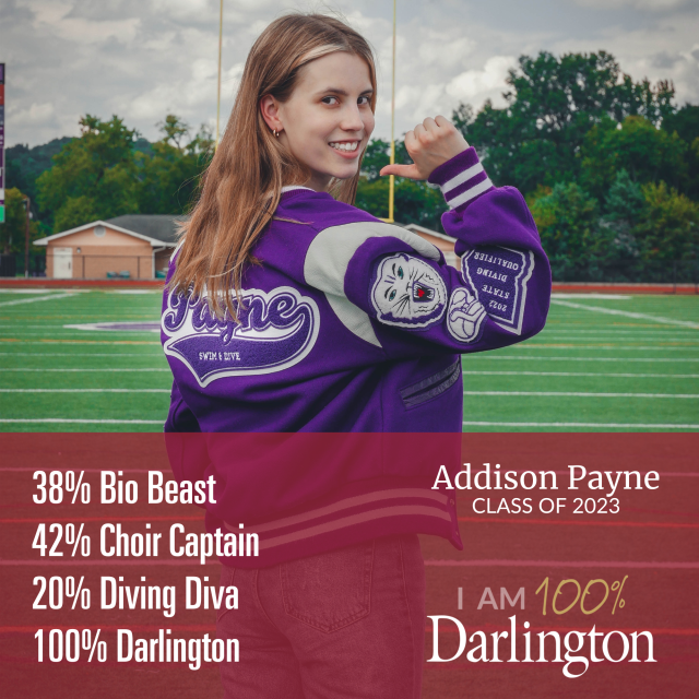 A Darlington student is made up of many things. None of which is average. We help our students develop their interests, passions and pursuits, because we believe every individual has something to contribute. We also believe that only when you're 100% you, are you 100% Darlington.