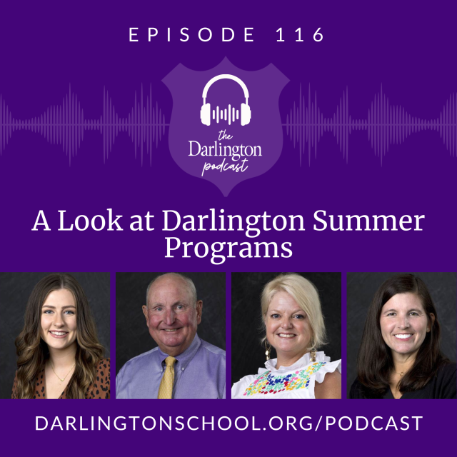 The Darlington Podcast is a collaboration between the communication and advancement teams, and is hosted by various members of the school community. Episodes are released each Thursday morning and available on most podcast platforms (search for The Darlington Podcast in your podcast player). Once new episodes are posted, you'll also be able to find them at www.darlingtonschool.org/podcast. Please subscribe wherever you listen to podcasts so that you'll get the latest episode each week!
