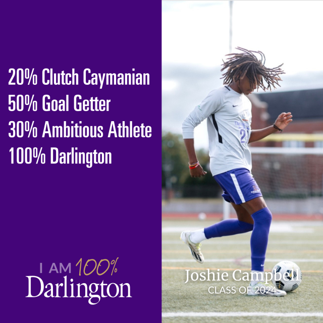 Let’s get to know Joshie Campbell, a two-year boarding student from the Cayman Islands and member of Darlington School Soccer Academy.