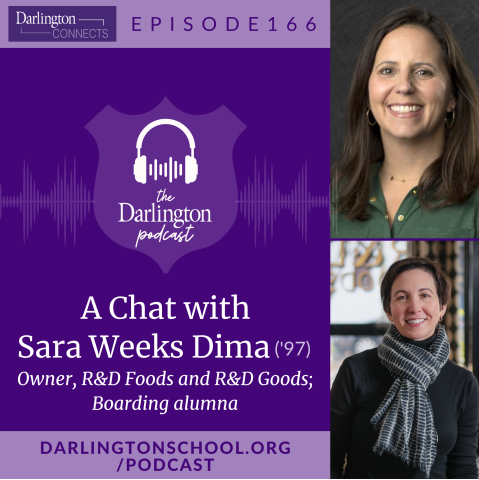 In this episode, Chief Advancement Officer Julie Lucas ('97) chats with Sara Weeks Dima ('97) about her experience as a boarding student at Darlington, her career small business owner in the food industry and more. This episode was recorded on May 10, 2024.