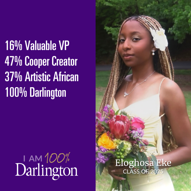 A Darlington student is made up of many things. None of which is average. We help our students develop their interests, passions and pursuits, because we believe every individual has something to contribute. We also believe that only when you're 100% you, are you 100% Darlington.