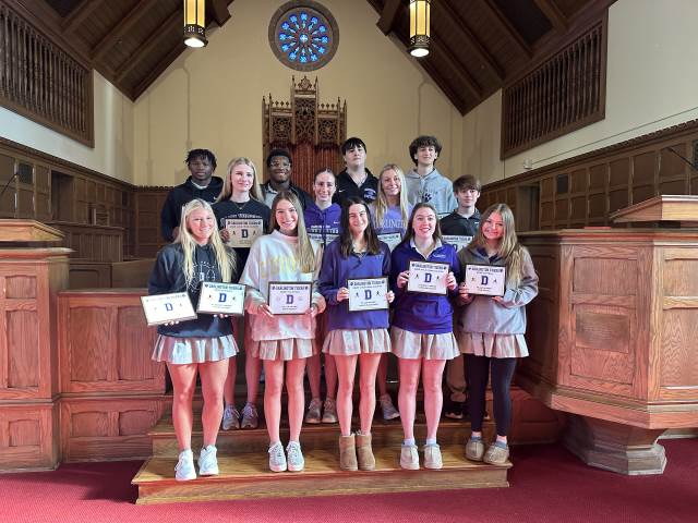 Outstanding athletes in varsity cheerleading, cross country, football, softball and volleyball were recognized at the Fall Sports Assembly in Morris Chapel.