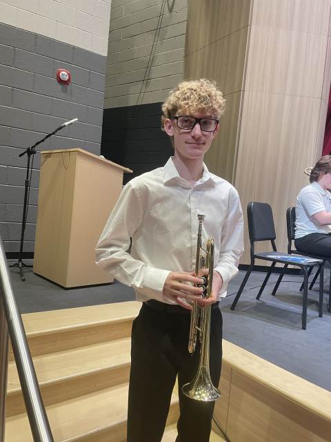 Xander Bickers is a fantastic leader in our Middle School Band program. Last year, Xander auditioned for District Honors Band and was selected for the lower Middle School group. This was still quite an accomplishment because very few 7th Grade students make the Middle School festival. This year, Xander returned to the auditions and made the top Middle School group, and I believe he may be our first Darlington Band member to ever have made the top ensemble. When Xander auditioned in December, he was in line with many, many young trumpet players from the area, and the high score he achieved from the judges is exceptional.