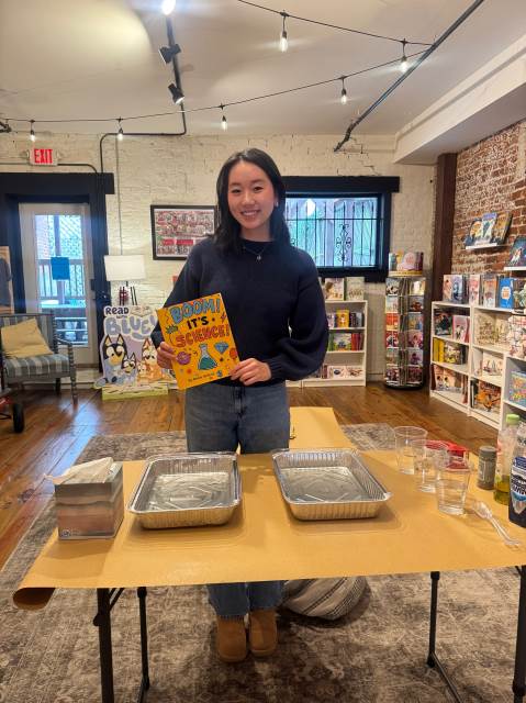 As part of my Senior Ventures project, I visited the Pre-K to 8 division in October to present one of the chapters and read it aloud to the students. I also hosted a story time at a local bookstore, River & Hill Books, in downtown Rome, where I read several chapters and demonstrated small experiments that connected to the book’s lessons.
