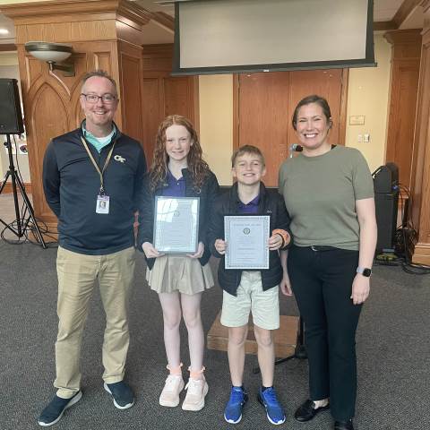 Fourth-graders Rosie Bruce and Branch Connelley were chosen to represent Darlington School as this year's "Terrific Kids" for the Noon Optimist Club of Rome. This recognition honors students who demonstrate strong character, a positive attitude, and a commitment to being their best each day.