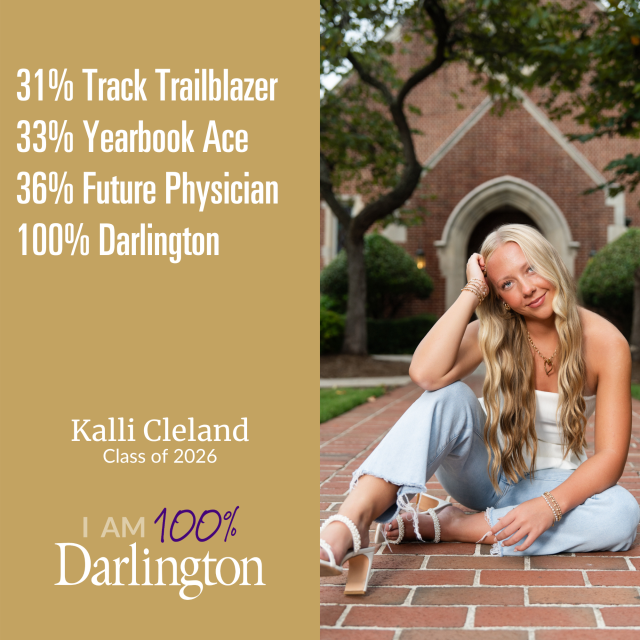 A Darlington student is made up of many things. None of which is average. We help our students develop their interests, passions and pursuits, because we believe every individual has something to contribute. We also believe that only when you're 100% you, are you 100% Darlington.
