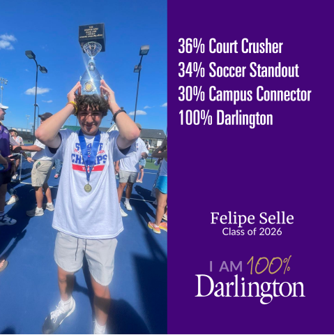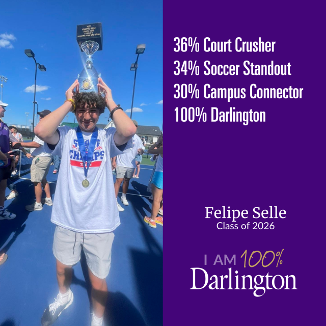 A Darlington student is made up of many things. None of which is average. We help our students develop their interests, passions and pursuits, because we believe every individual has something to contribute. We also believe that only when you're 100% you, are you 100% Darlington.