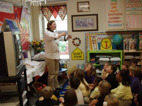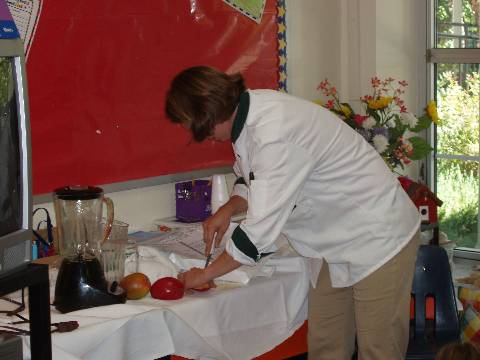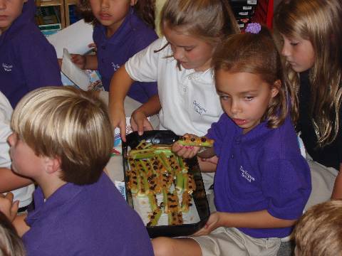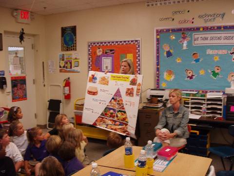 Ms. Klosterman taught second-graders how to eat the correct foods according to the Food Pyramid. She also brought Ants on a Log and made Mango Smoothies for everyone to try.