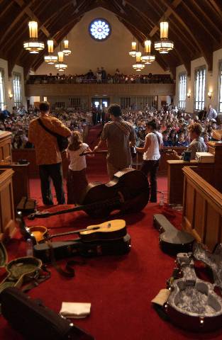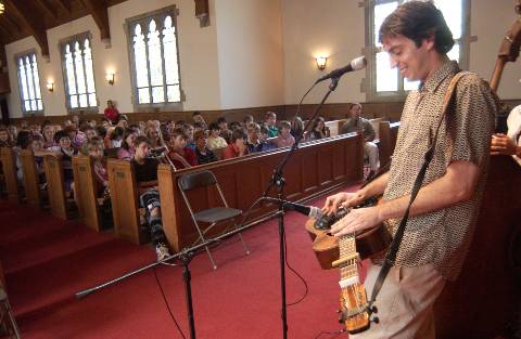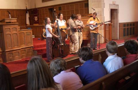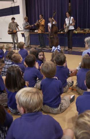 The Biscuit Burners, an acoustic group from Asheville, N.C., performed for the Lower, Middle and Upper Schools during Fall for the Arts Month. The group finished 2004 with several outstanding accolades. They were recently showcased at the International Bluegrass Association Conference, their debut album “Fiery Mountain Music” appeared in the Chicago Tribune’s Top Ten Bluegrass Albums of the Year and their song “Come On Darlin” was chosen as the IPOD Hot Pick Bluegrass Song of the Year.