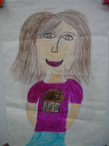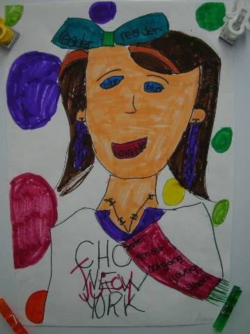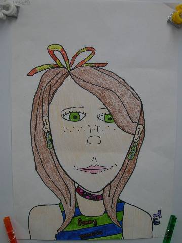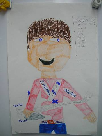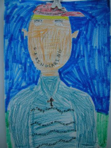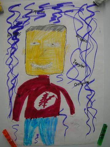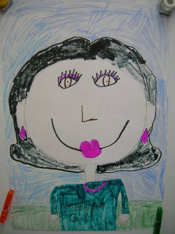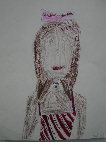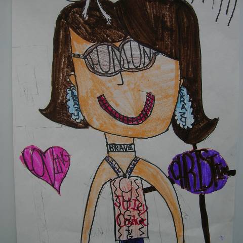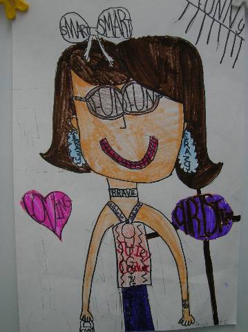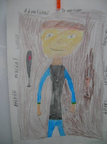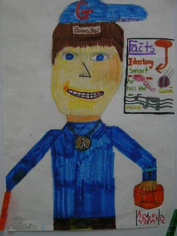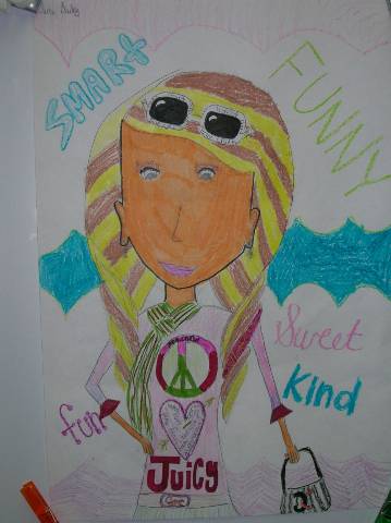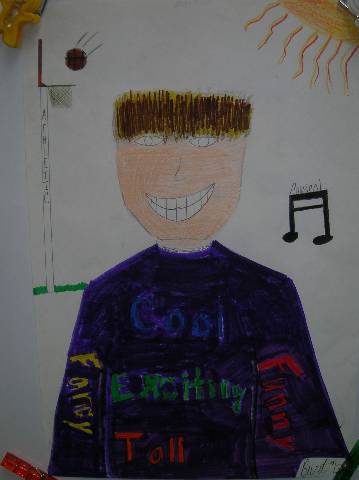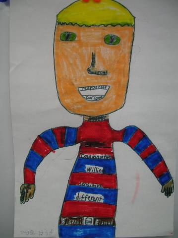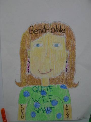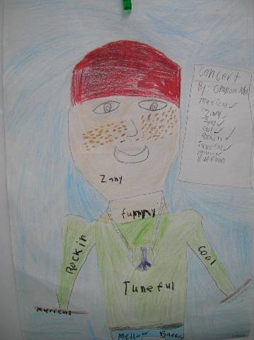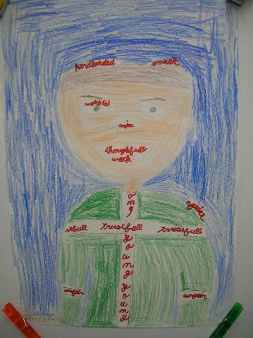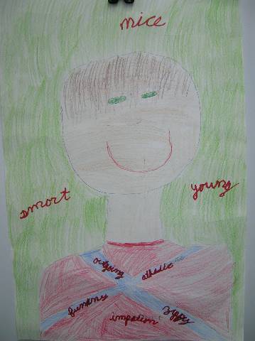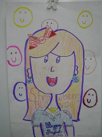 Fourth-grade students chose adjectives to describe themselves and included them in their self-portraits.