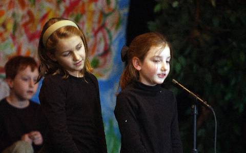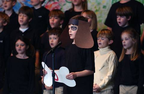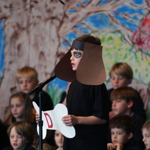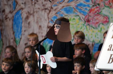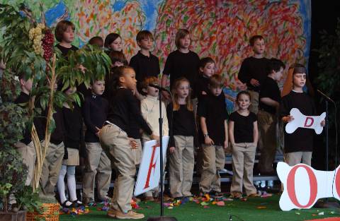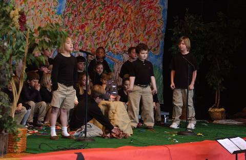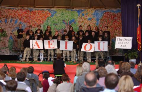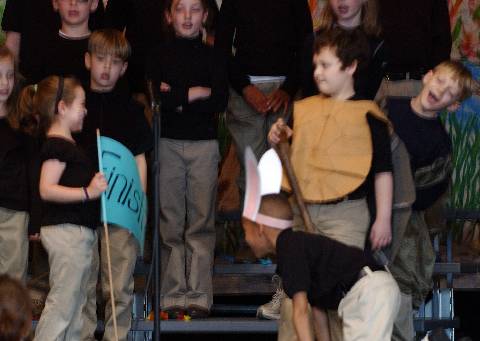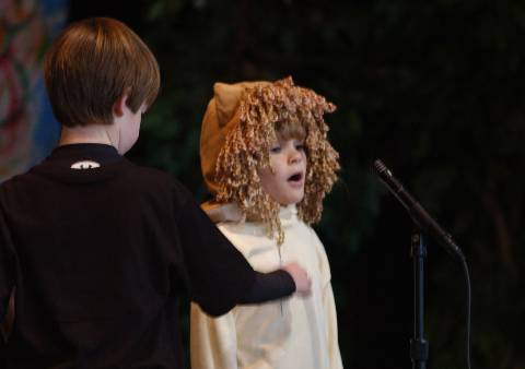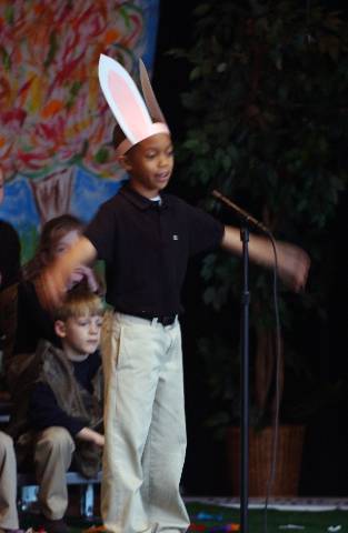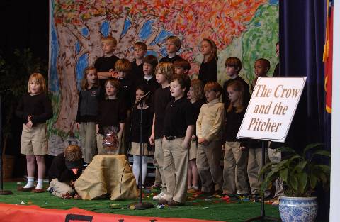 Second-graders perform "Aesop's Fables" for parents, family and friends.