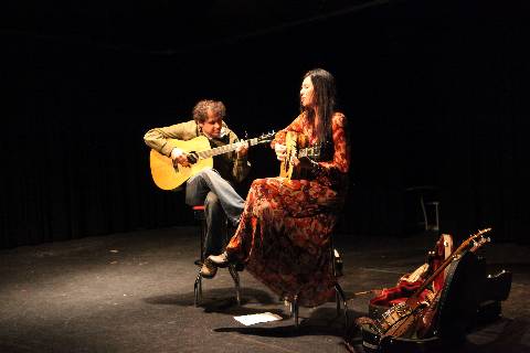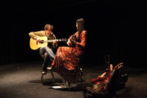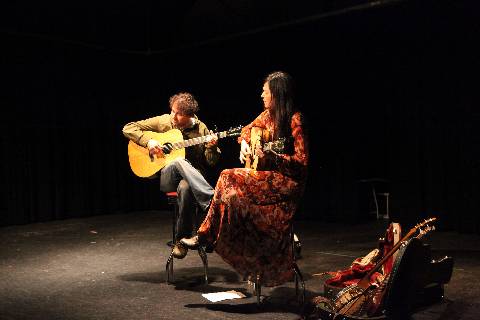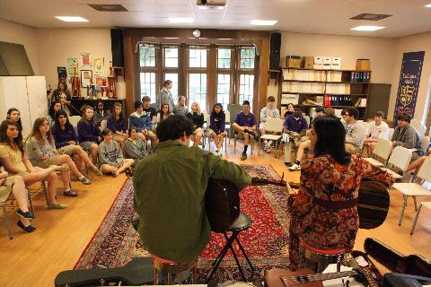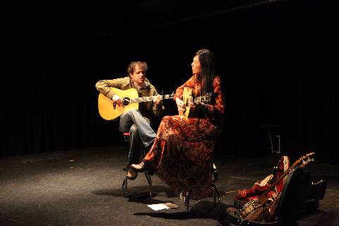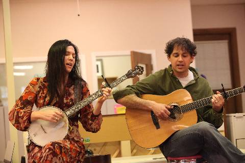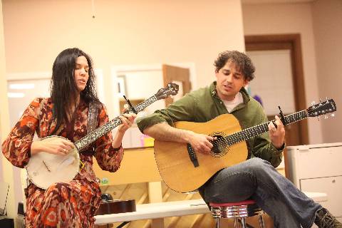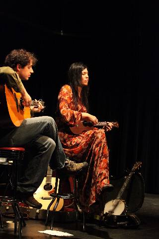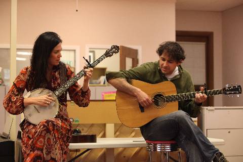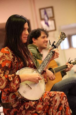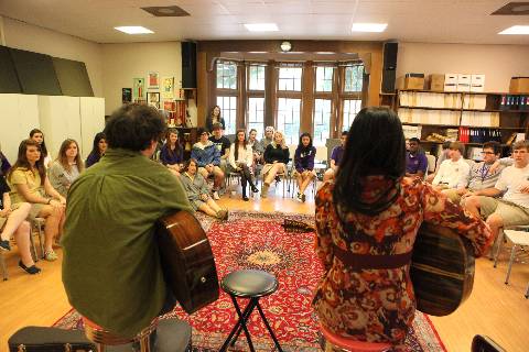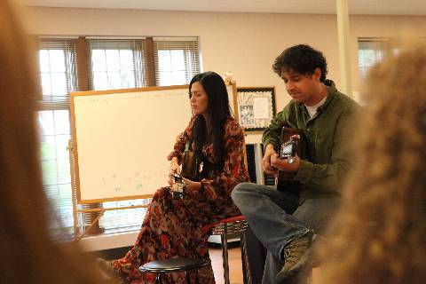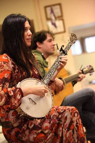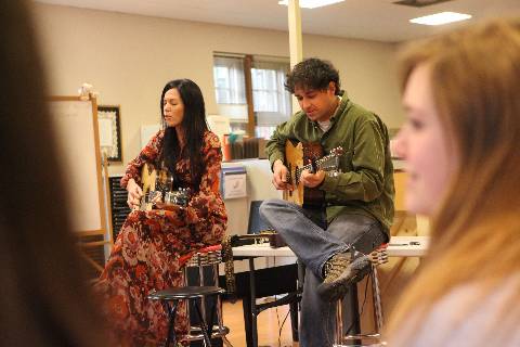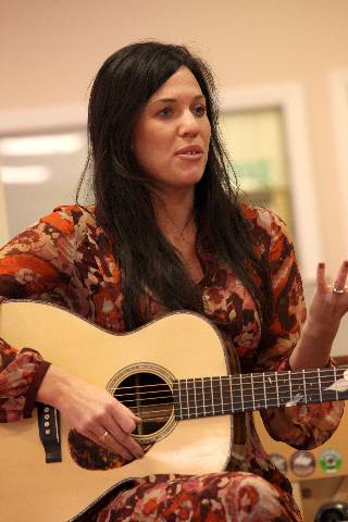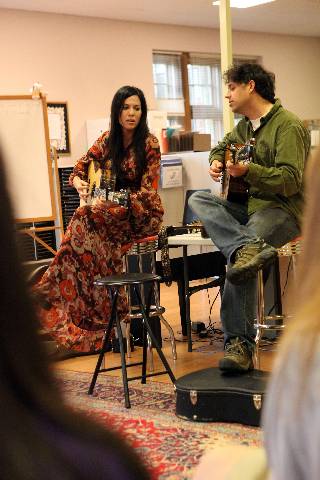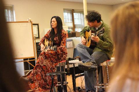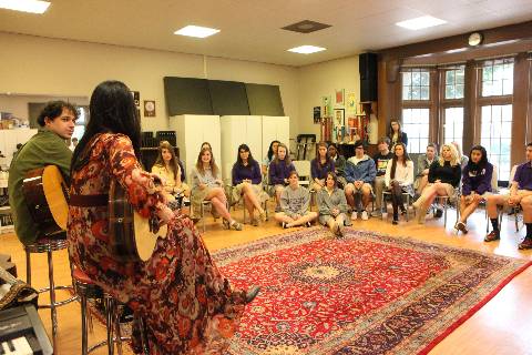 Bluegrass singer Shannon Whitworth, the daughter of Headmaster Tom Whitworth and his wife, Margo, performs for students. The singer/songwriter was in Rome to play a benefit for the DeSoto Theatre Foundation.