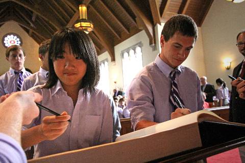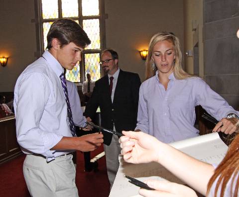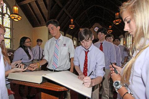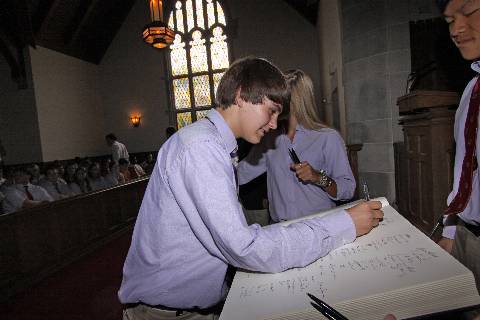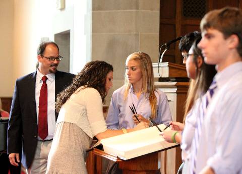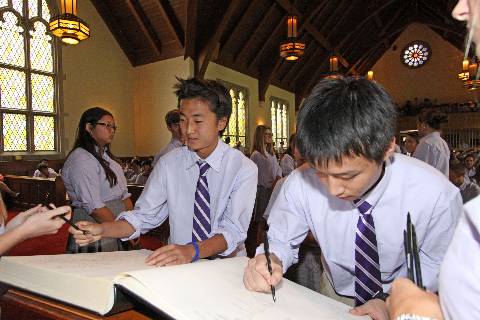 New students and faculty pledge to abide by the Honor Code during the annual signing ceremony.