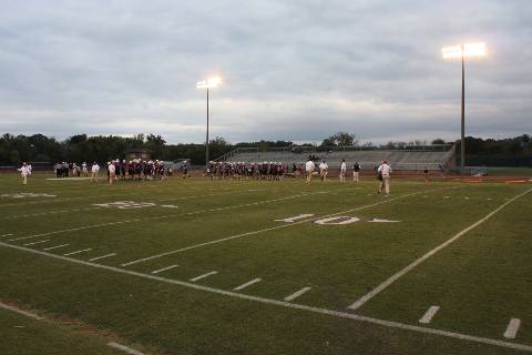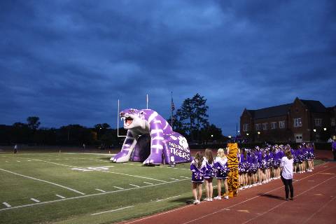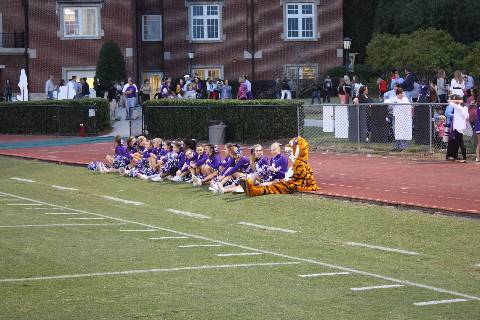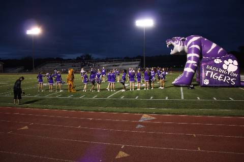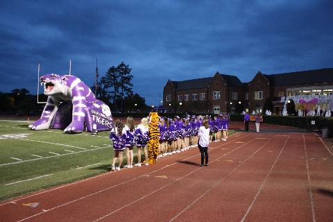 Senior members of the football team, band, Diamonds, and the cheerleading squad are all recognized before the Homecoming football game.