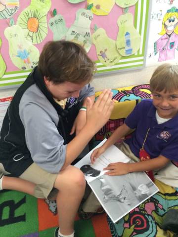 The Harrison Heroes and Mrs. Barfield's Spanish class recently got together to reinforce what the Heroes were learning in the classroom. Mrs. Barfield's students created a book to help them learn the continents, days of the week, and even the names of animals, all in Spanish. The Heroes appreciate and love you, Mrs. Barfield!