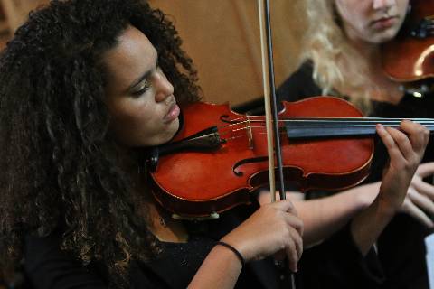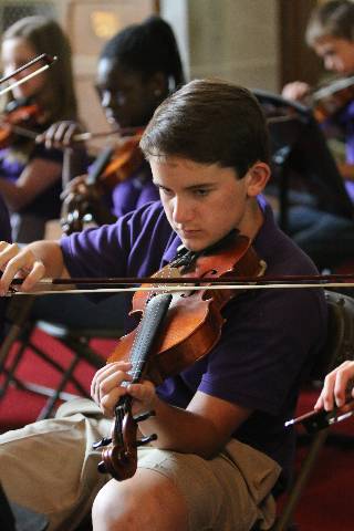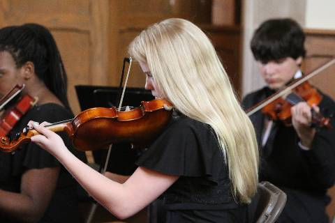 Darlington's Upper School and Middle School orchestra students perform at the annual Spring String Orchestra Concert in Morris Chapel.