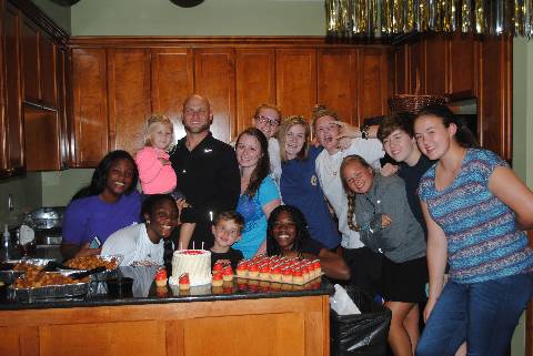 Surprise! The girls of Regester House celebrated with Mr. Peal on his birthday!