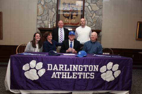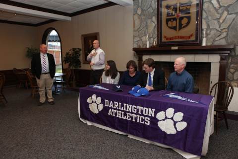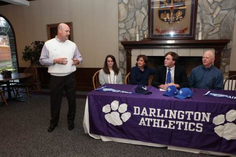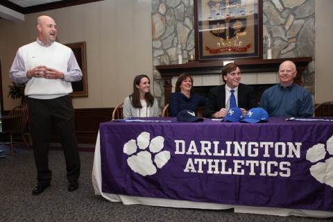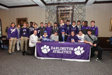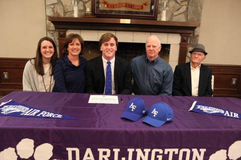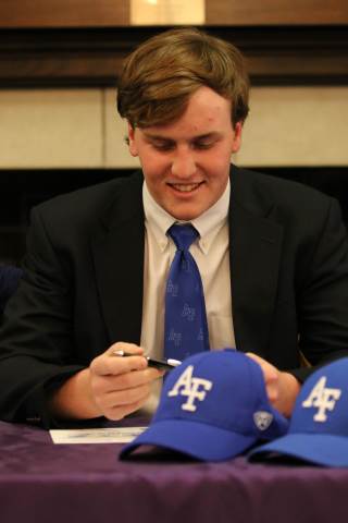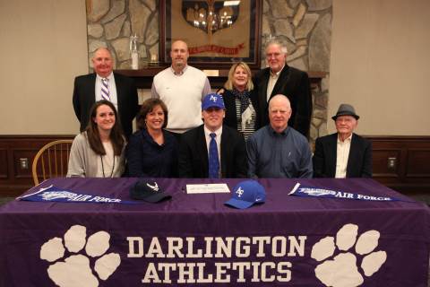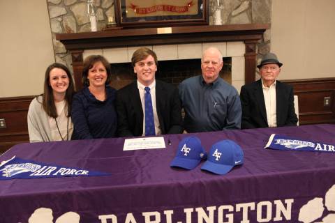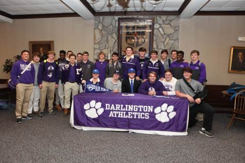 Senior Jake Walker signs to play football with the United States Air Force Academy Preparatory School during a brief ceremony in Darlington's Dodd Banquet Room on Thursday.
