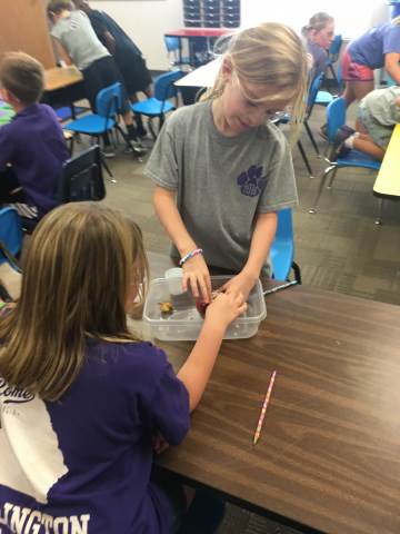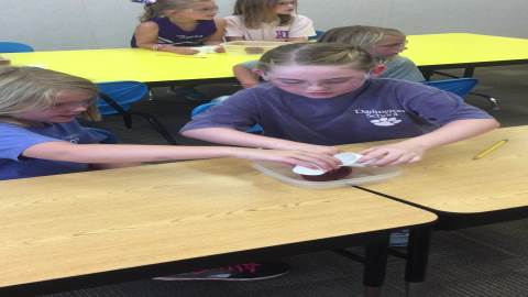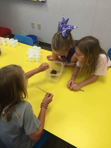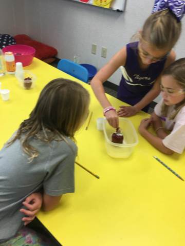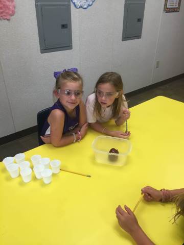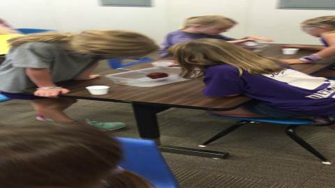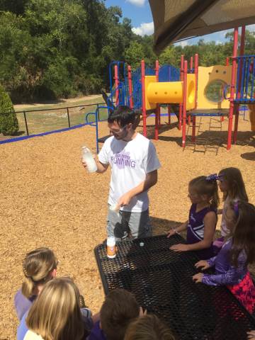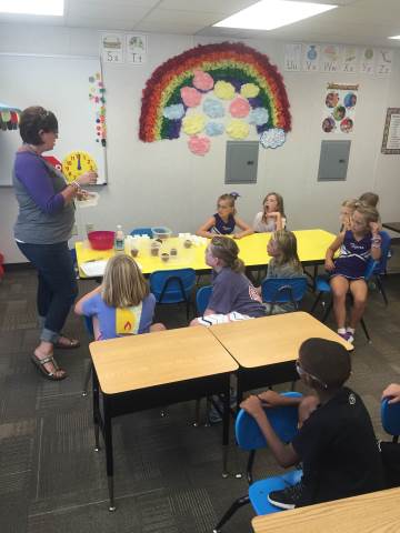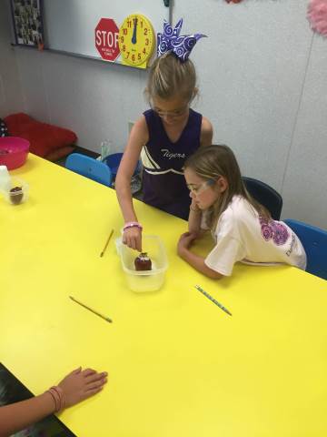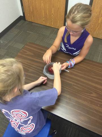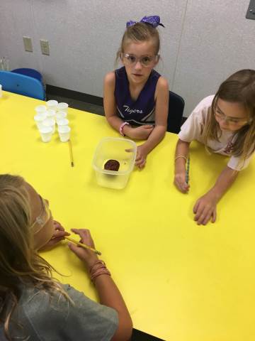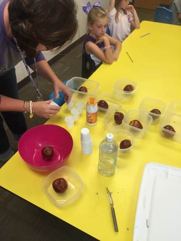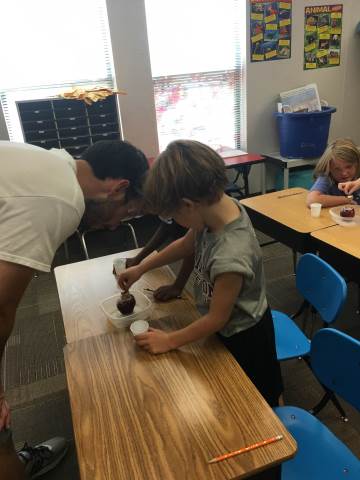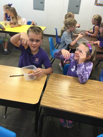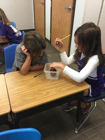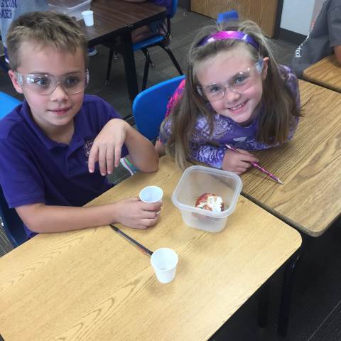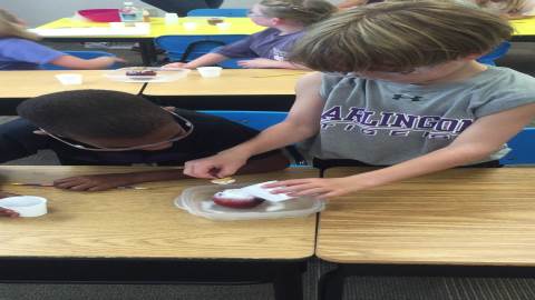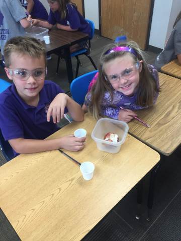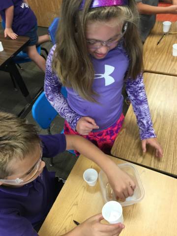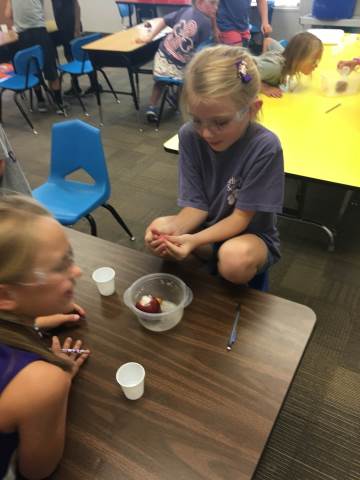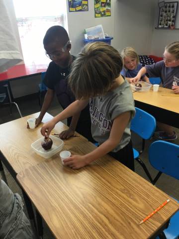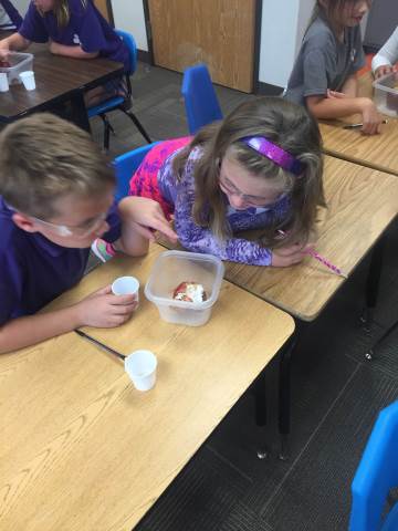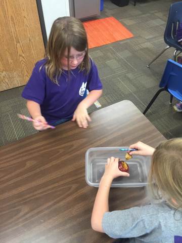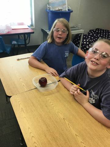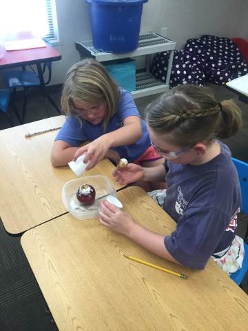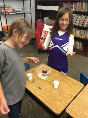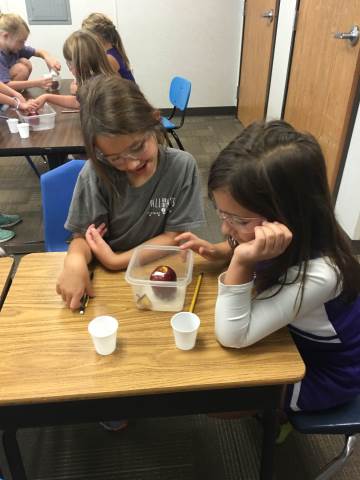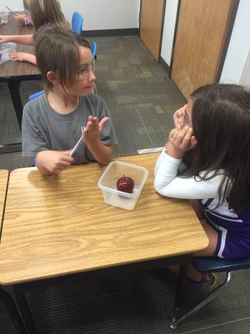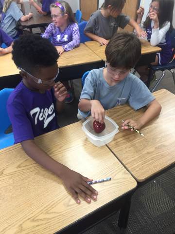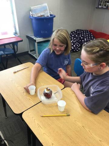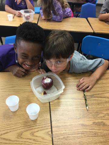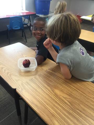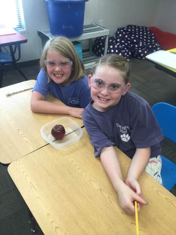 Second graders got the chance to explore the scientific method today during an apple experiment. Mr. Merriam joined the Jordan Jewels today to make apple volcanoes using baking soda and vinegar. Students had to think with their partners in order to make their own hypothesis and then carry out the experiment to reach a conclusion. Afterwards, the class used the remaining materials to make a larger "explosion" inside of the vinegar bottle.