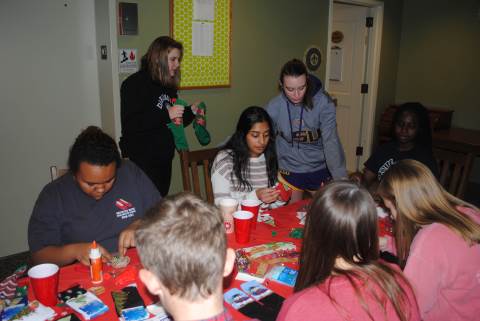 The girls and families of Regester House celebrated Christmas with festive music, appetizers, and desserts. They also decorated their very own "ugly Christmas socks."