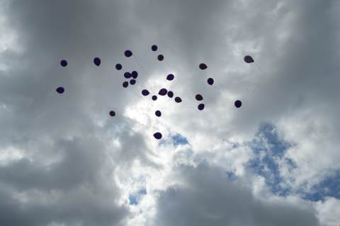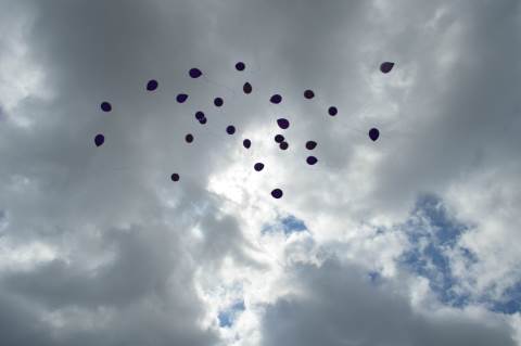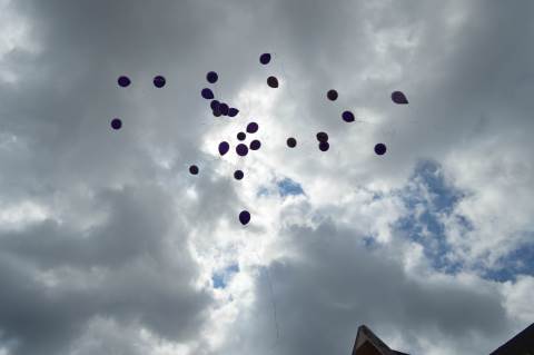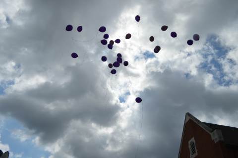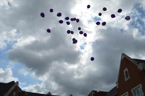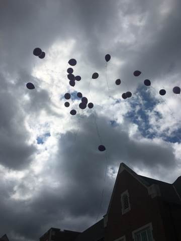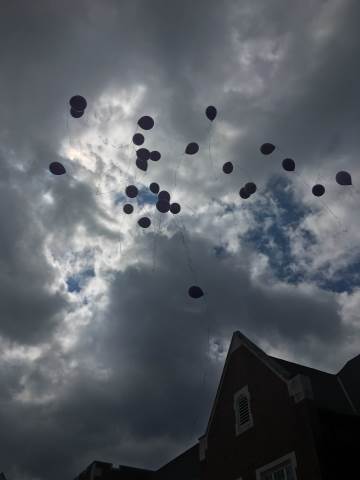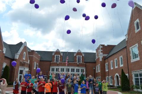 The fifth-grade students, Darlington's Class of 2024, celebrated the end of elementary school by releasing purple balloons as they move up the steps to the middle grades.