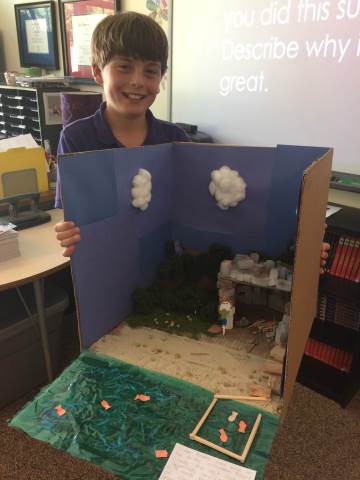 After reading the book, Hatchet, for summer reading, 5th graders chose to create a mobile, a diorama, or write a research paper related to the book. The results were awesome!