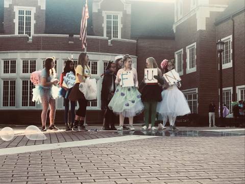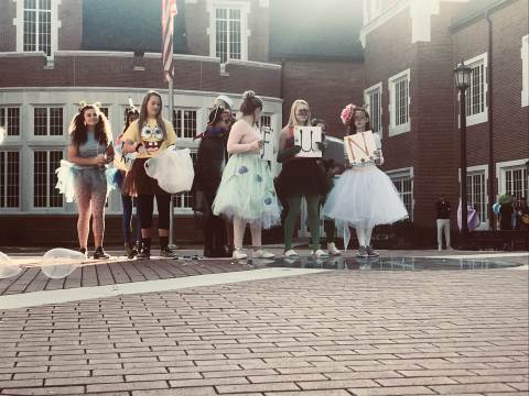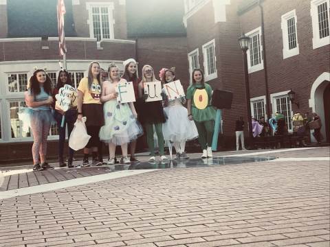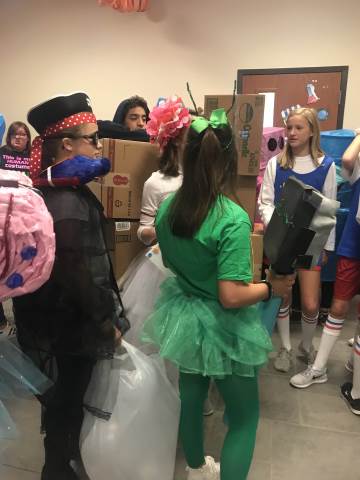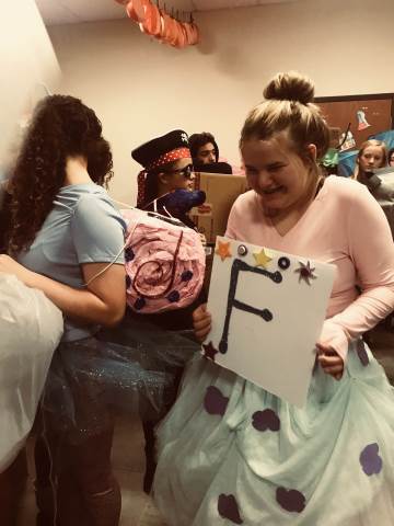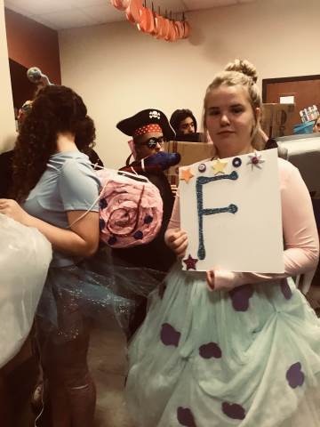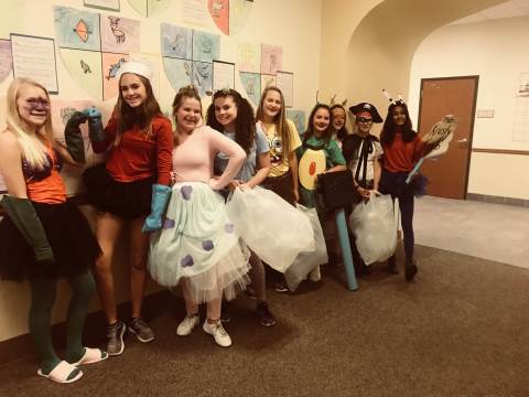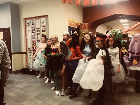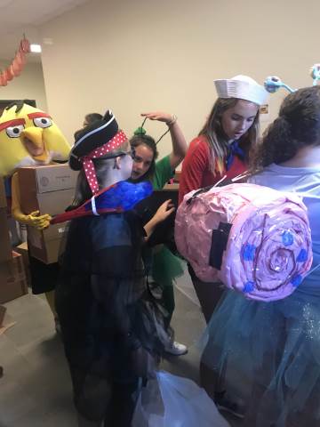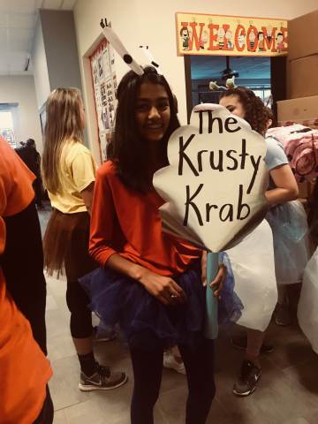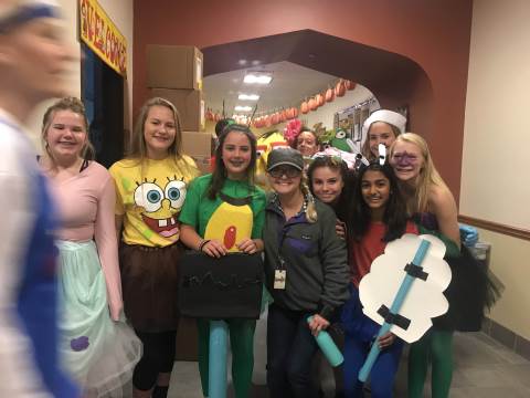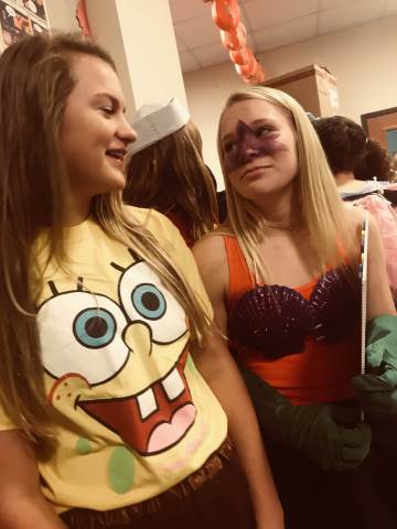 Mrs. Rogers advisory group celebrated Halloween as Spongebob Square pants characters.