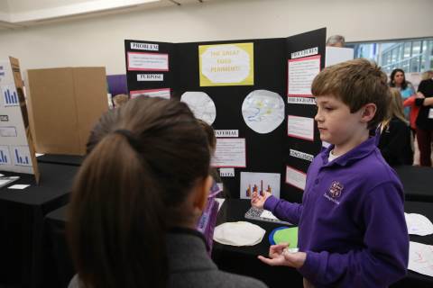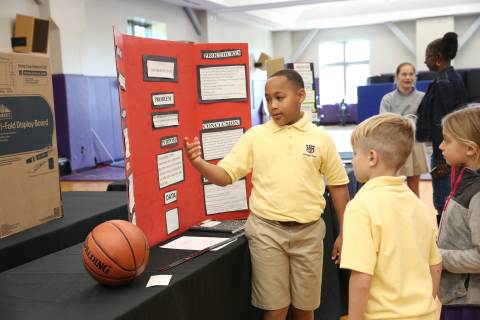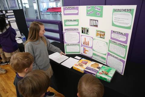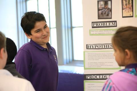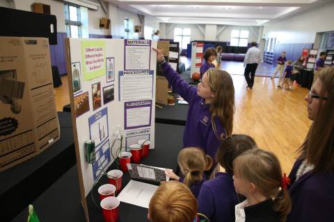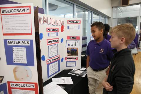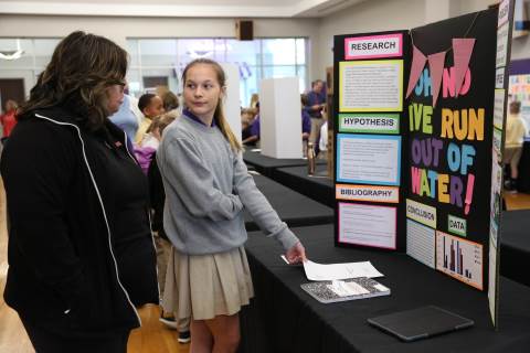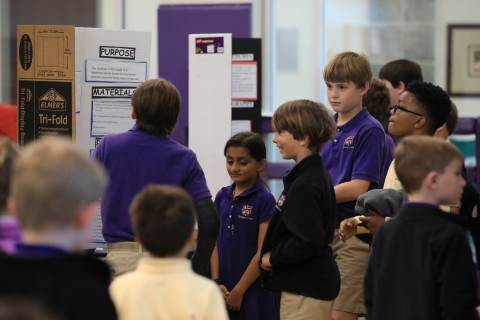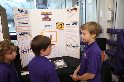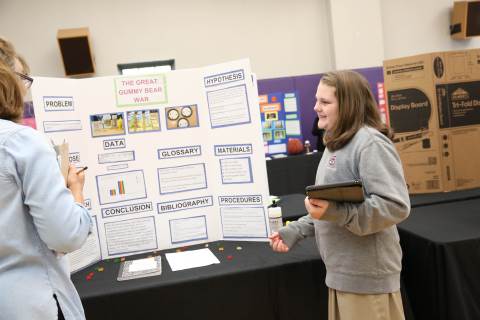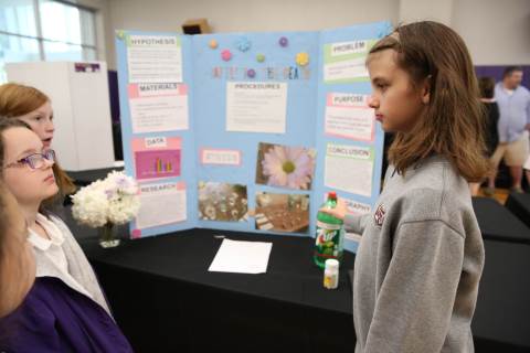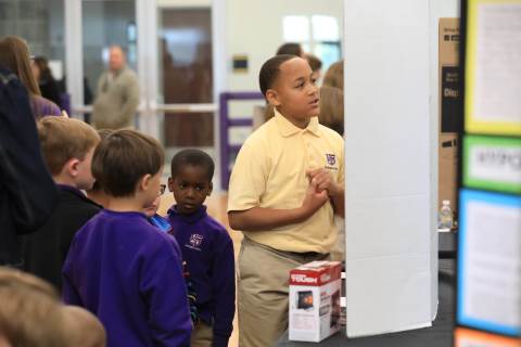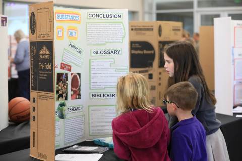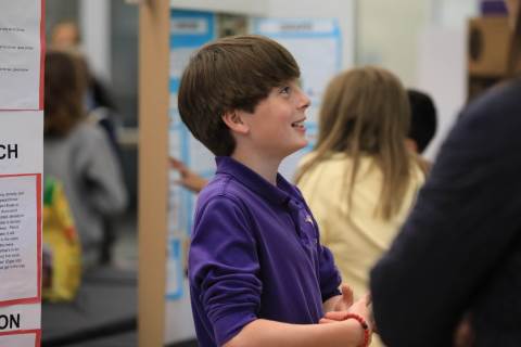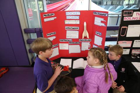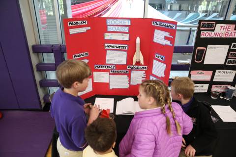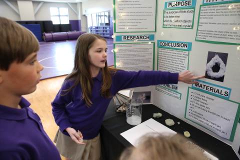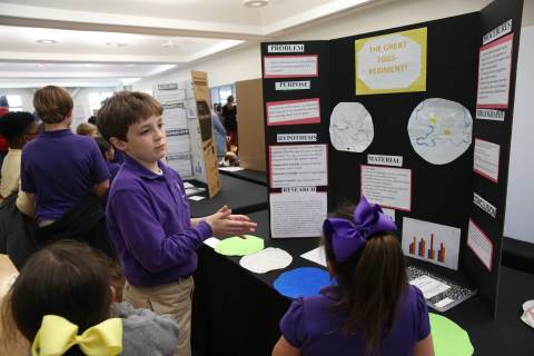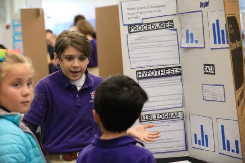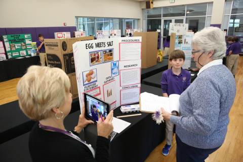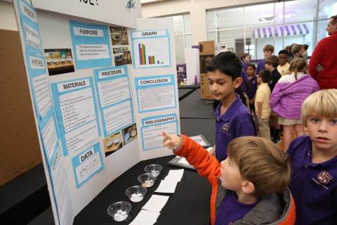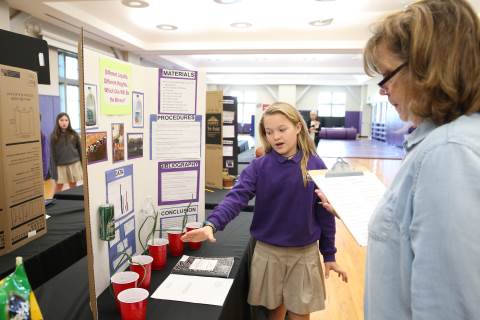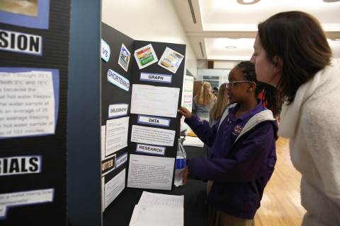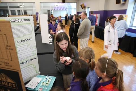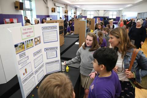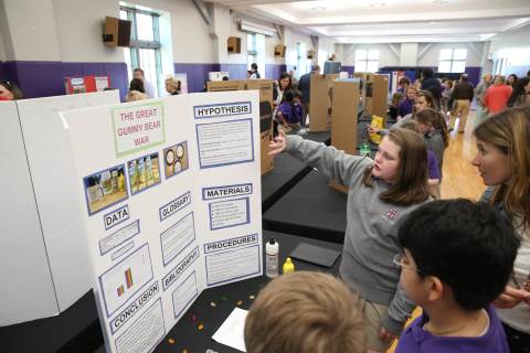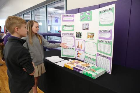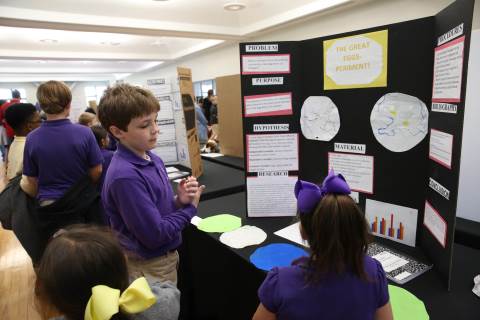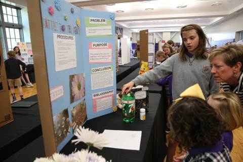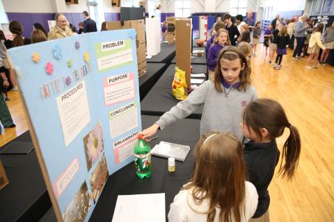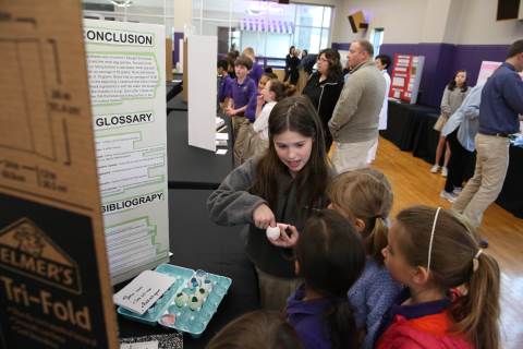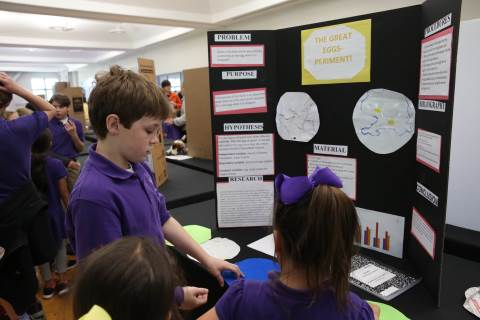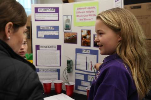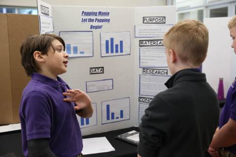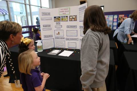After weeks of testing their hypotheses, fifth-graders present the findings of their Science Fair projects to judges, friends and family members.