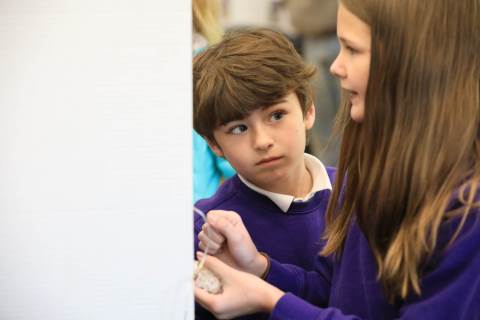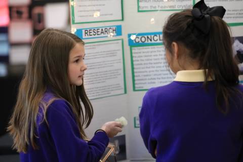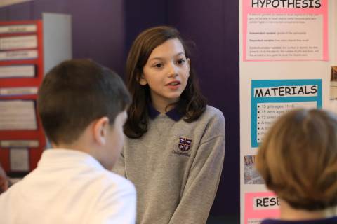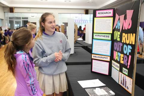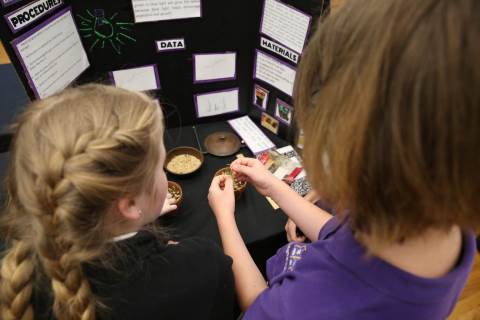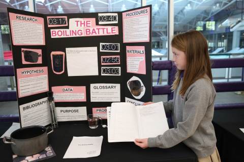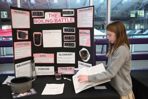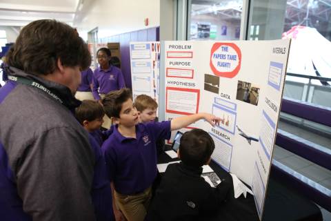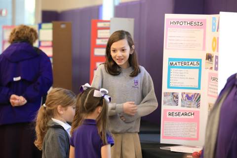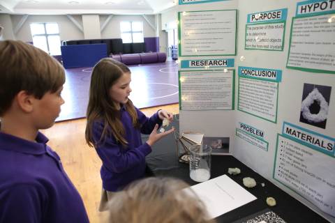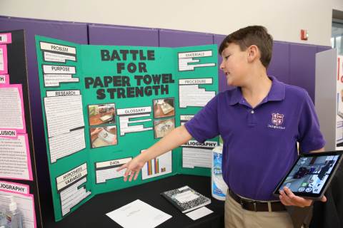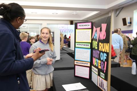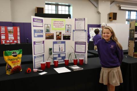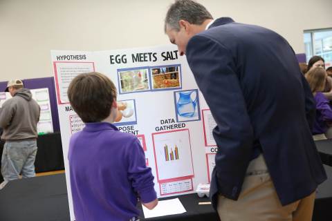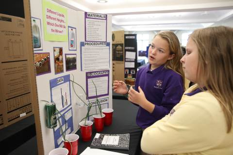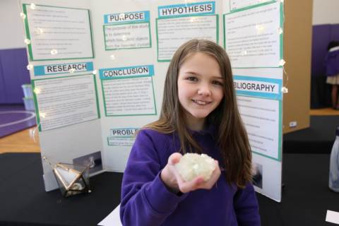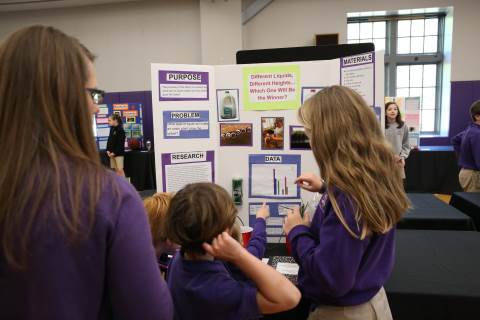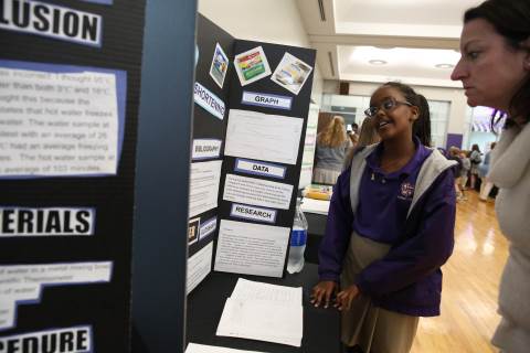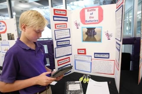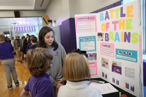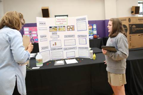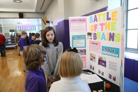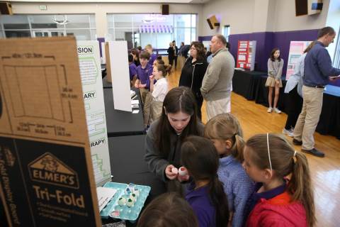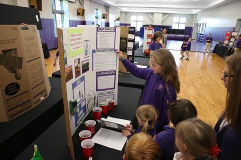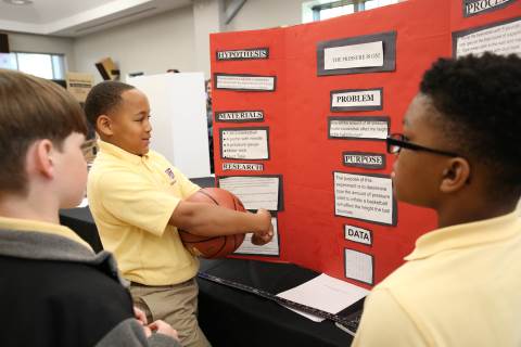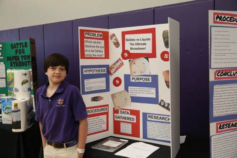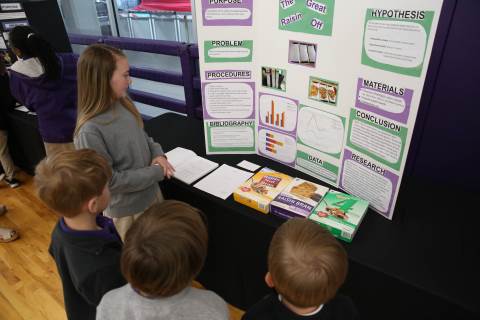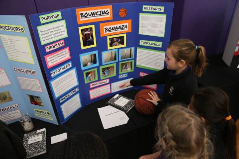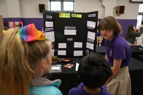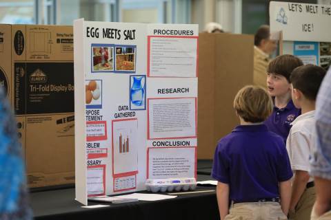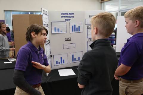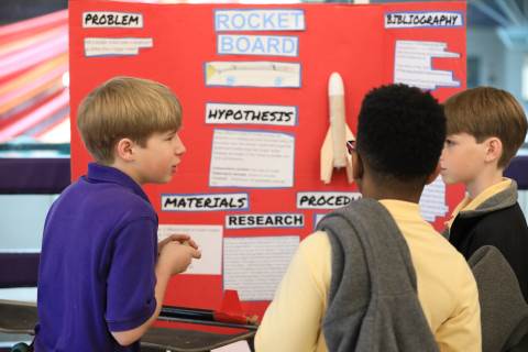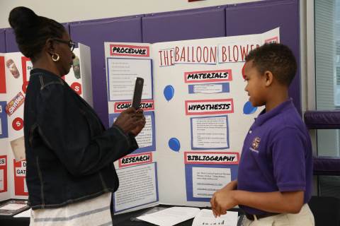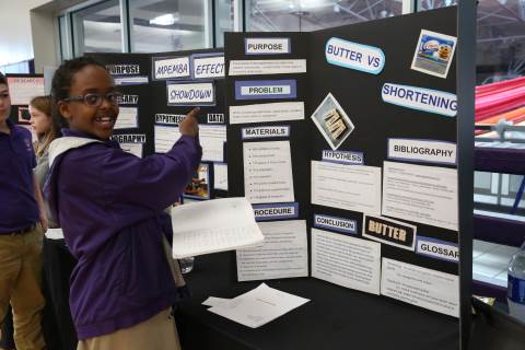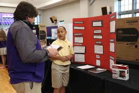 After weeks of testing their hypotheses, fifth-graders present the findings of their Science Fair projects to judges, friends and family members.