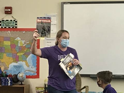 Each year third-graders have the opportunity to learn about the events of 9/11 from someone who was actually there that day - our friend and first grade teacher Mrs. Peer. Mrs. Peer shared personal stories, photographs, newspaper and magazine articles, and personal insights with the students. Thank you Mrs. Peer for sharing with us your memories of a world changing event.