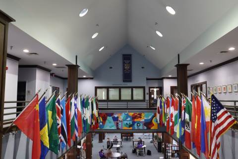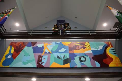 Upper School art students collaborated with Xaivier Ringer ('04) and Ellie Borremo of Rome Mural CoLab earlier this year to create a mural for the Upper School. We were thrilled to welcome Xaivier and Ellie back to campus to see the finished product, now on display in the McCallie-Kennedy Library.