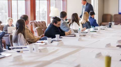 19 alumni representing seven states returned to Darlington for the 10th annual Leadership Darlington program. Over the course of two days, participants obtained an integrated view of Darlington through dialogue with senior administrators, campus leaders and students. Paige (Skidmore) Dickow ('78, LD '14), treasurer of Darlington's Board of Trustees, served as honorary chair.