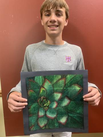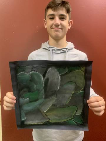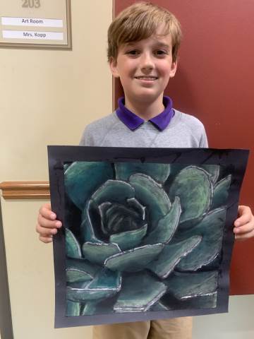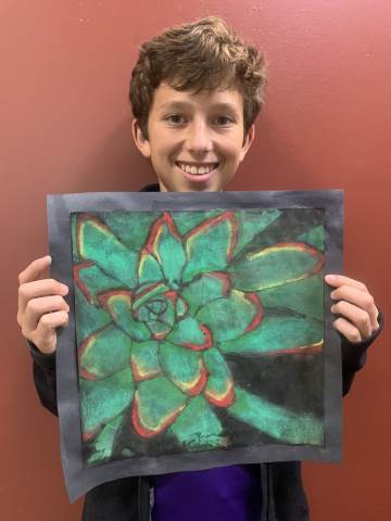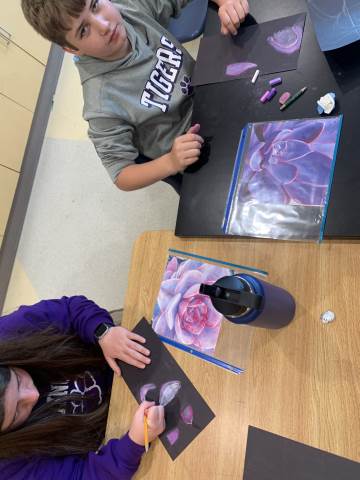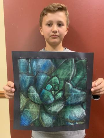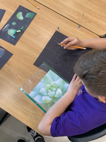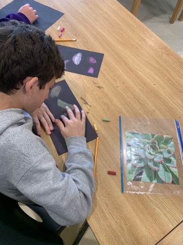 Middle grades Visual arts students created succulent drawings using chalk pastels.