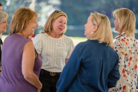 Alumni and friends enjoyed lunch by the lakeside, followed by a Tiger Talk with Head of School Brent Bell and a panel of seniors.