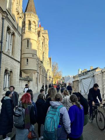 We closed our trip by working our way back to London by way of Bath and Oxford. Our driving and walking tour of Bath took us through the long history of the town, including the Roman Baths, the 500-year-old Gothic cathedral Bath Abbey, the Pulteney Bridge, and Jane Austen Centre. Lunch was grab-and-go around an outdoor market where many took their first taste of a traditional Cornish pasty. While walking through Oxford we learned about the ancient university system and visited the Sheldonian Theatre, Radcliffe Camera, Bodleian Library, St. Mary's Church, Bridge of Sighs, and the Ashmolean Museum. In another fortunate bit of timing for our trip, that evening we dressed in our most patriotic clothes to aggravate a rowdy group of Brits we joined to watch the U.S. beat England 0-0 in the World Cup. Our last day of touring took us to Windsor Castle to see the State Apartments, the Order of the Garter, St. George's Hall, Garter Throne Room, and St. George's Chapel where student's saw where 25 royals are entombed, including Henry VIII and now Elizabeth II. Afterwards we hit London one last time where different groups headed out in different directions from Piccadilly Circus to visit the National Gallery, Camden Market, King's Cross Station (of Harry Potter's Platform 9 3/4 fame), and more Christmas decorations and shops. Our final dinner was at a pub to eat fish and chips, reflect together on the amazing experience we had all shared together, and then do just a little more shopping at Fortnum and Mason!