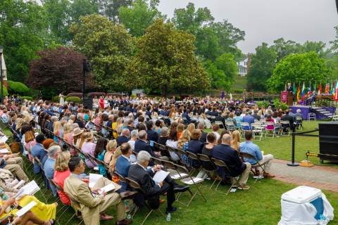 The Class of 2023 and their families, friends and teachers gather on the chapel lawn for the 118th Commencement ceremony, which featured an address by local surgeon Dr. Ryland Scott, father of Kate, Parker and Ryland Scott ('23).