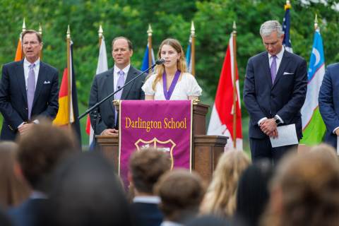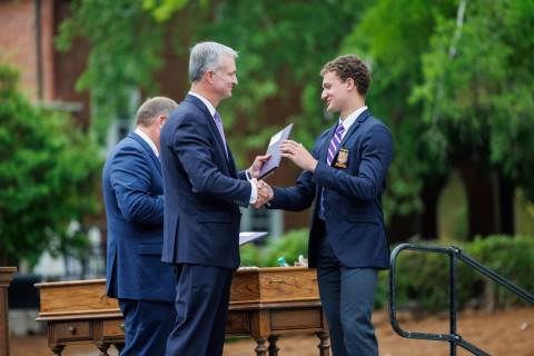 The Class of 2023 and their families, friends and teachers gather on the chapel lawn for the 118th Commencement ceremony, which featured an address by local surgeon Dr. Ryland Scott, father of Kate, Parker and Ryland Scott ('23).