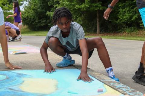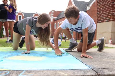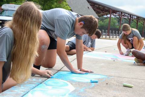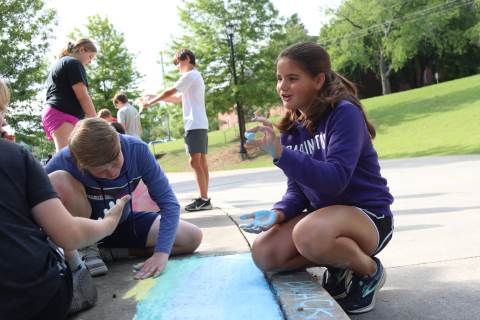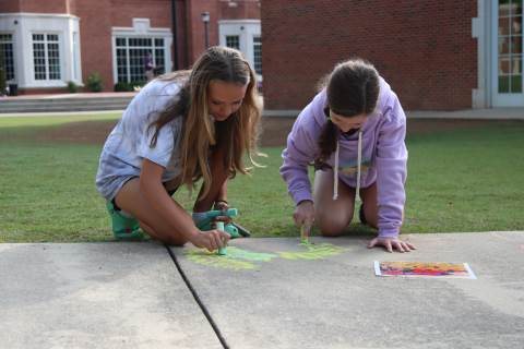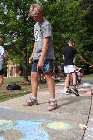 For their final Art Block of the school year, groups of students in grades 6-8 competed against one another to replicate famous paintings on a square of sidewalk using only chalk. A winning team was selected from each grade level, and teams also won for Best in Show and Best Teamwork. Afterward, students enjoyed Chick-fil-A and doughnuts in the Johnson-Drummond Amphitheater!