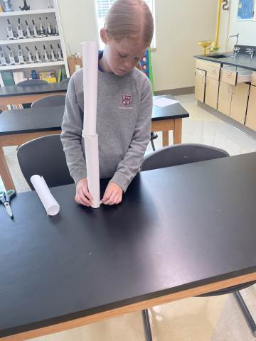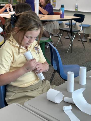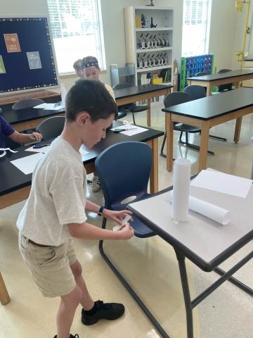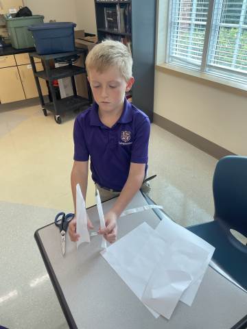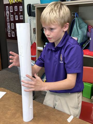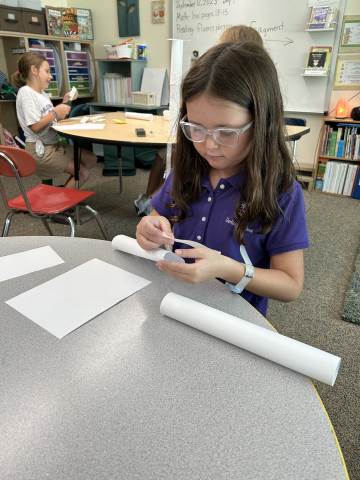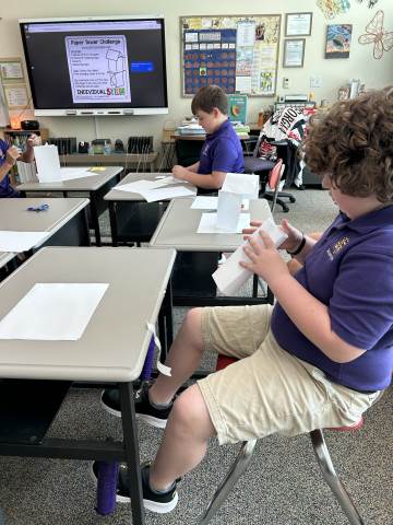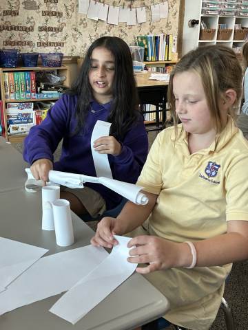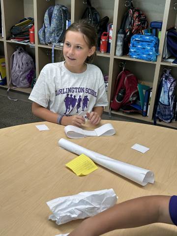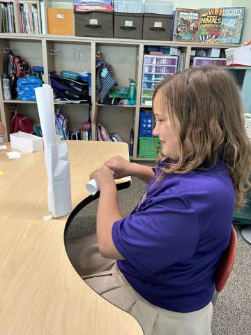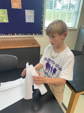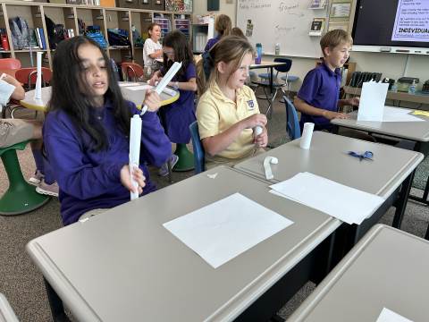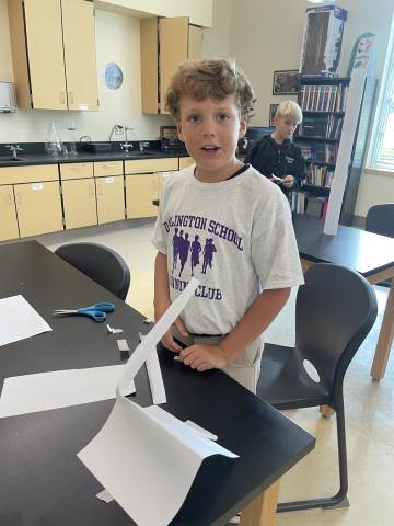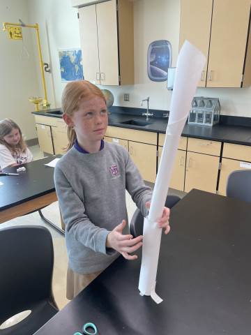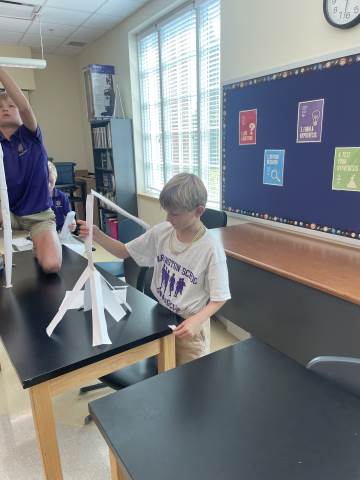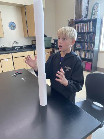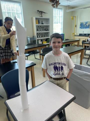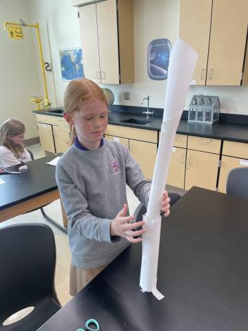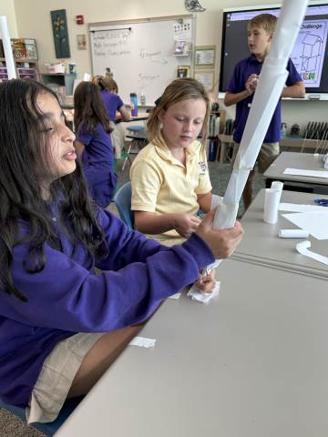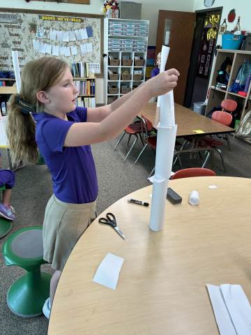 Third-, fourth- and fifth-grade students were challenged with creating the tallest free-standing tower possible in 10 minutes using only three sheets of paper and 12 inches of masking tape. The tape and paper could be cut in any way but no other materials could be used.