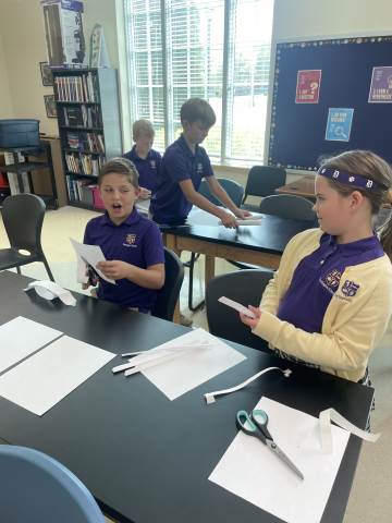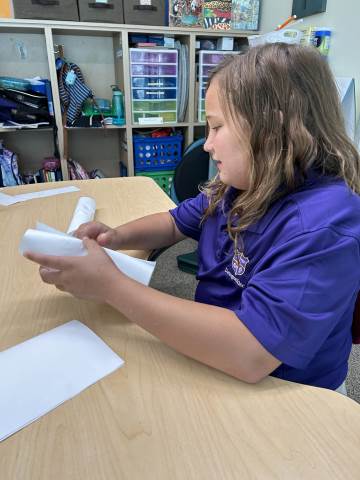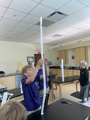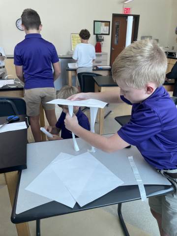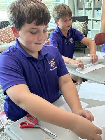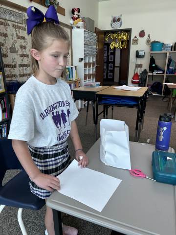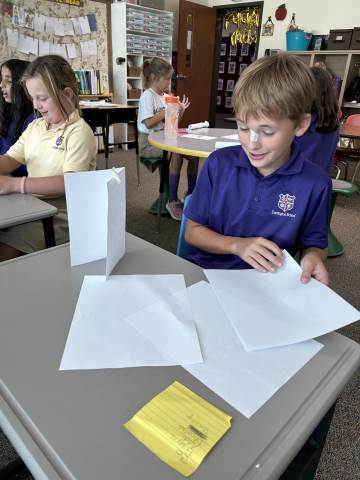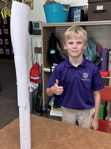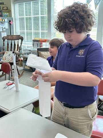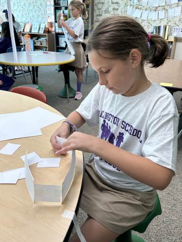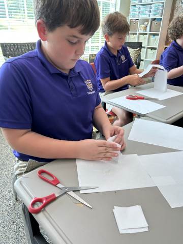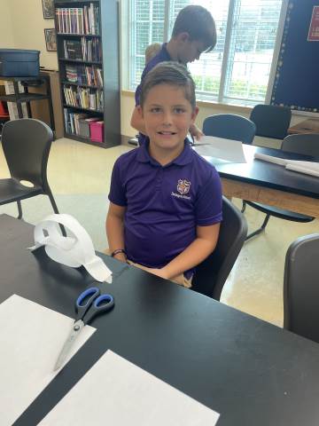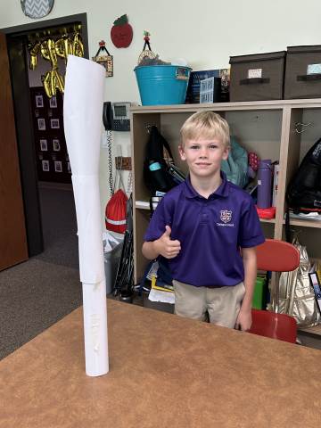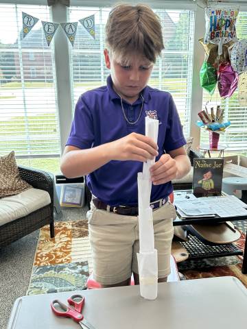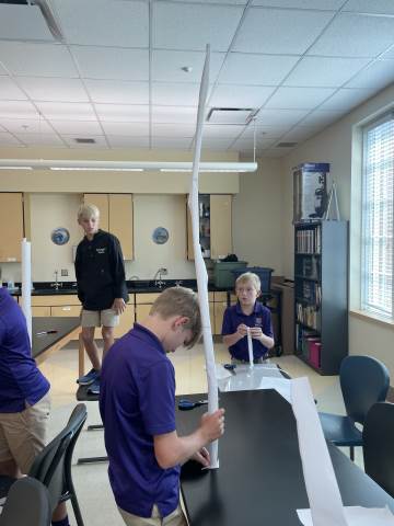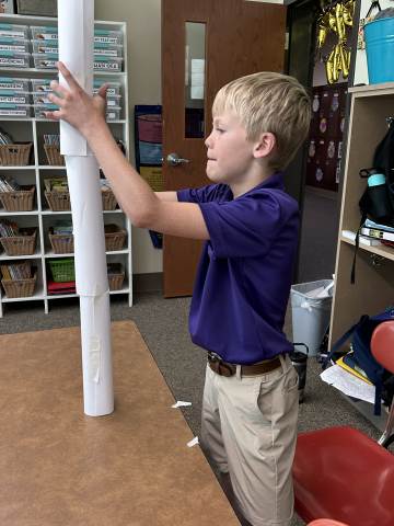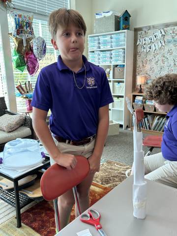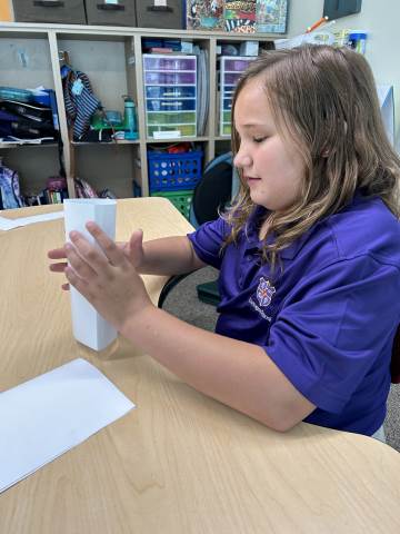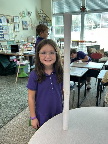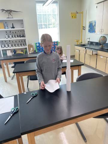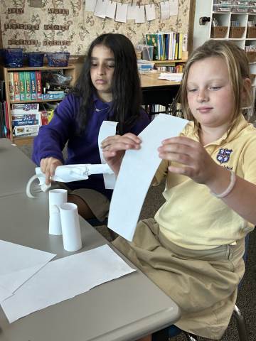 Third-, fourth- and fifth-grade students were challenged with creating the tallest free-standing tower possible in 10 minutes using only three sheets of paper and 12 inches of masking tape. The tape and paper could be cut in any way but no other materials could be used.