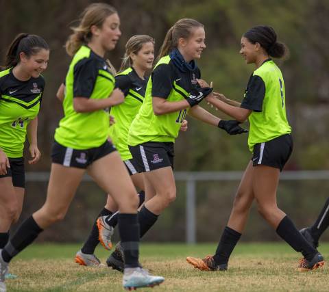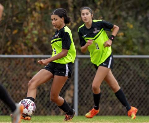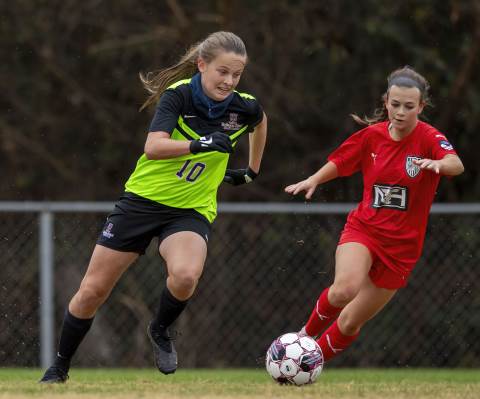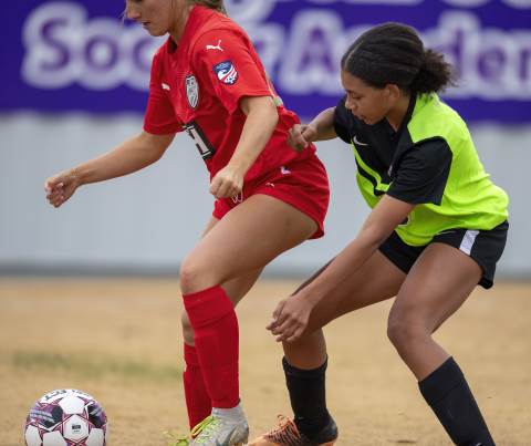The girls Soccer Academy team competes against GA Impact.