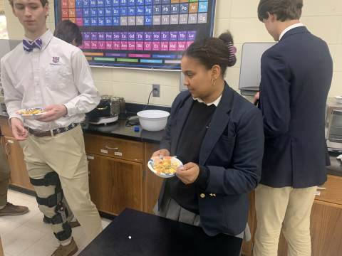 Jack Bell, Emma Chen and Aiden Parsa, participants in the Senior Ventures program, have united their efforts around a common passion for nutrition. Collaborating, they conceived the idea of hosting a Food Festival during iPeriod. Their approach is both innovative and educational. Jack and Aiden kick off each session with an enlightening nutritional presentation, tailored to the day's culinary theme. Emma then takes the lead, sharing the recipe and guiding the group through the cooking process. Today's menu featured a delectable fried rice dish that received rave reviews. Emma's ambition extends beyond the festival; she aims to empower her peers with easy-to-follow recipes suitable for home kitchens or dorm rooms. To facilitate their culinary creations, the trio utilizes versatile electric pots capable of preparing a wide array of dishes. Stay tuned for more dishes this group prepares together!